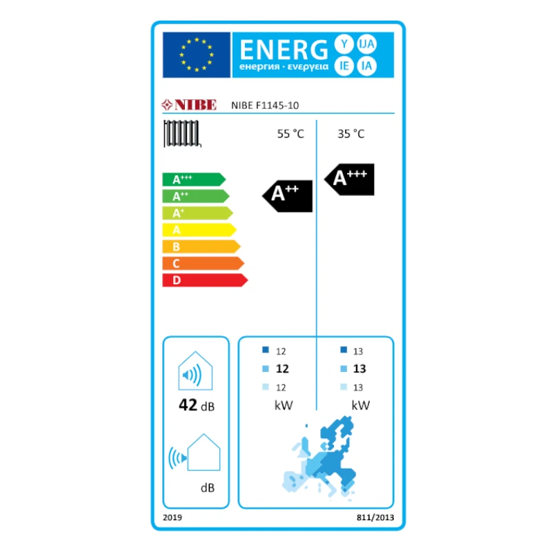 - klasa energetyczna A+++ (dot. pomp o mocy 6, 8, 10, oraz 12 kW, zgodnie z Dyrektywą ErP, przy temp. zasilania 35oC)