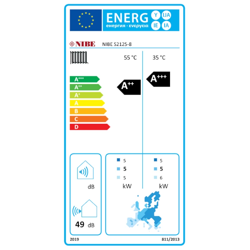 Nowy typoszereg NIBE S2125/F2120 stanowi przełom w technologii powietrznych pomp ciepła typu powietrze/woda, osiągając sezonowy współczynnik efektywności SCOP na tym samym poziomie, co pompy ciepła solanka/woda. Seria NIBE S2125/F2120 to pompy ciepła typu monoblok, z modulowaną mocą grzewczą i wbudowaną funkcją chłodzenia aktywnego. Urządzenia wyposażone są w inwerterową sprężarkę, dzięki czemu zapewniają produkcję ciepła (63o C na zasilaniu systemu grzewczego), nawet przy temperaturze –25o C. Pompa ciepła NIBE S2125/F2120 może współpracować z innymi źródłami ciepła, takimi jak np. kotły elektryczne, olejowe, gazowe. W celu produkcji ciepłej wody użytkowej urządzenie wymaga podłączenia zasobnika c.w.u. (np. NIBE BA-ST 90XX 1FEDC), bądź kompaktowej centrali wewnętrznej SHK 200M lub NIBE VVM 225/310/500/S320 z wbudowanym sterownikiem. Przy wysokim zapotrzebowaniu do ciepło, istnieje możliwość podłączenia w układzie kaskadowym, maksymalnie 8 jednostek S2125/F2120.