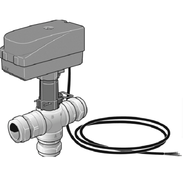 Trójdrogowy zawór z siłownikiem przełączający z ogrzewania na chłodzenie, o średnicy przyłącza Ø22.
