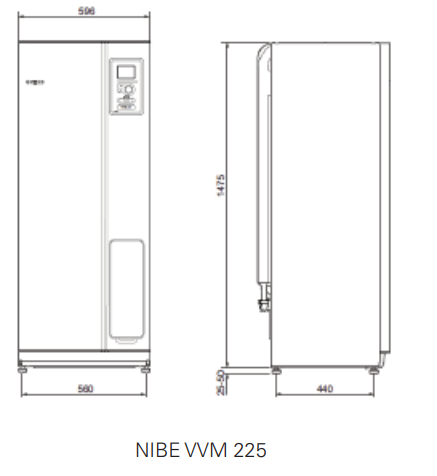NIBE VVM 225 R CENTRALA WEW. Z WĘŻOWNICOWYM NIERDZEWNYM ZAS. C.W.U i STEROWNIKIEM (dedykowana do S2125-8, F2120-8, F2040-6, -8, AMS 6, 8 z HBS)