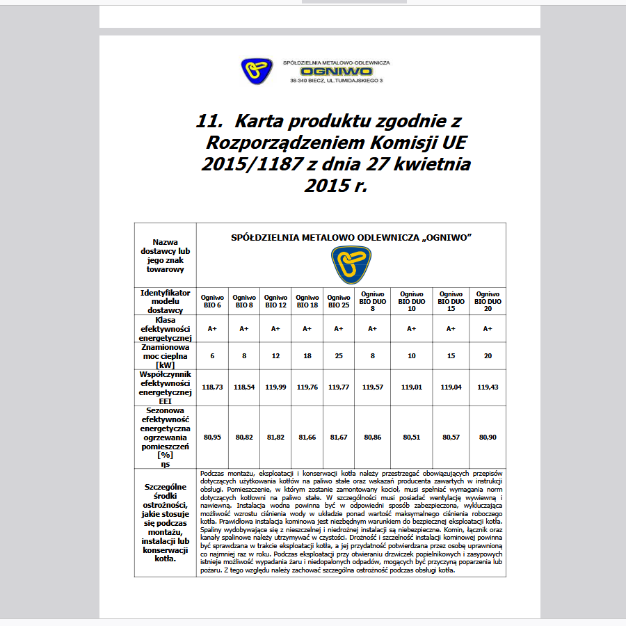 Kocioł grzewczy OGNIWO BIO to innowacyjny produkt marki SMO OGNIWO, który spełnia wymagania normy PN-EN 303-5:2021-09 dla 5 klasy.