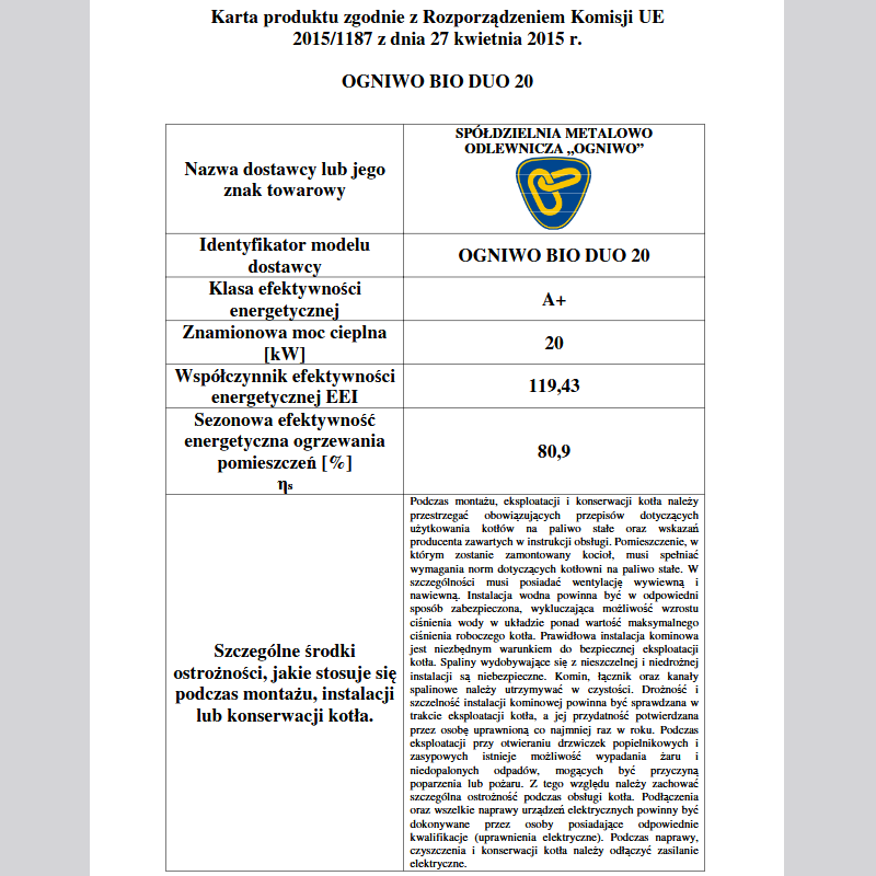 Kocioł Ogniwo BIO DUO to kocioł wielopaliwowy, łączy technologie kotłów pelletowych, oraz kotłów zgazowujących drewno. Kocioł spełnia wymagania, 5 klasy oraz dyrektywy Ekoprojektu dla obydwu rodzajów paliw. Wygodne ogrzewanie pelletem z tanim ogrzewaniem drewnem kawałkowym w jednym urządzeniu.