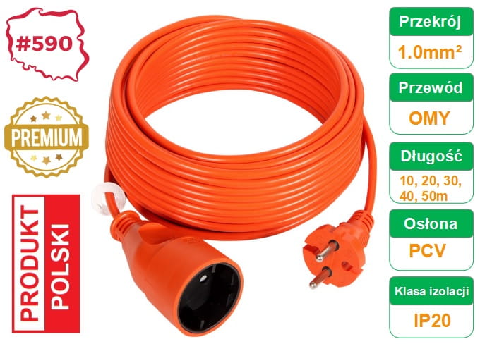 PRZEDŁUŻACZ OGRODOWY 30m PO30-PL BEST Przedłużacze znajdują zastosowanie wszędzie tam, gdzie wykorzystywane są urządzenia i maszyny zasilane prądem elektrycznym. Zarówno w domu, przydomowym ogrodzie, na działce czy campingu, w małym warsztacie, czy też na na budowie – wszędzie tam będą nam one potrzebne. Przedłużacz ogrodowy – jednogniazdowy, bez ziemienia – pomarańczowy Długość: 30m Przekrój przewodu: 1.0mm Zasilanie: 230V Maksymalne obciążenie: 10A Maksymalna moc: 2300W Klasa izolacji: IP20 PRODUKT POLSKI