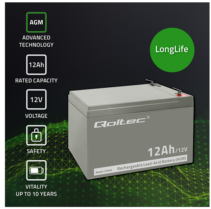 QOLTEC AKUMULATOR AGM 12 Ah 12V 53049