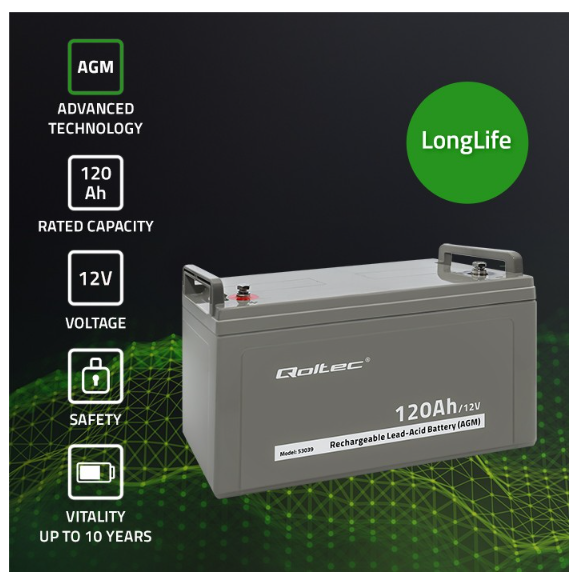 QOLTEC AKUMULATOR AGM 120 Ah 12V 53039