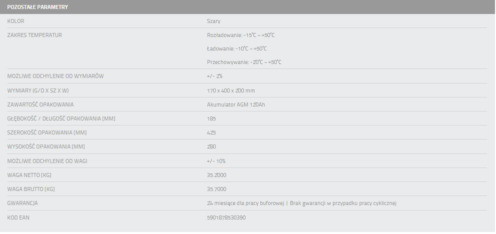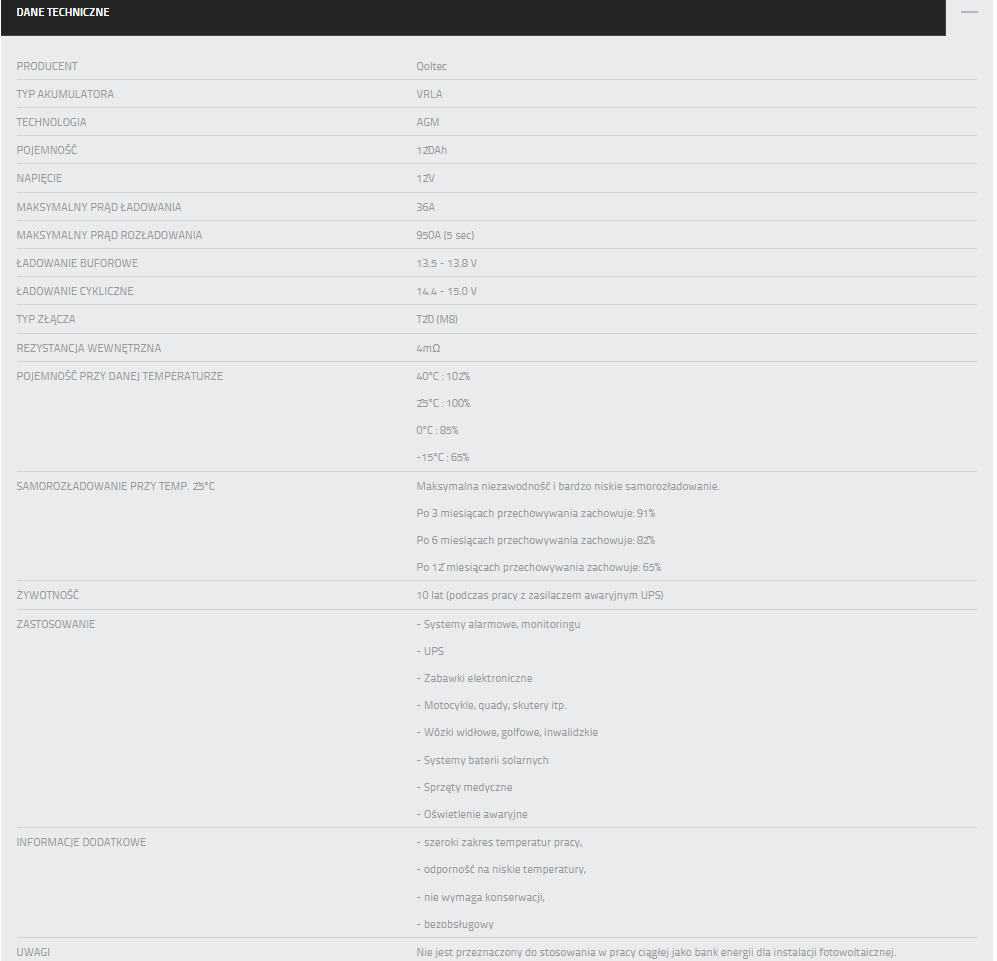 Wykorzystywana bateria będzie bardzo sprawnie funkcjonowała i cieszyła się długą żywotnością – wynoszącąnawet 10 lat, jako zasilanie awaryjne w pracy buforowejnp.do zasilaczy UPS, w systemach alarmowych, oświetleniu awaryjnym czy pojazdach spalinowych.