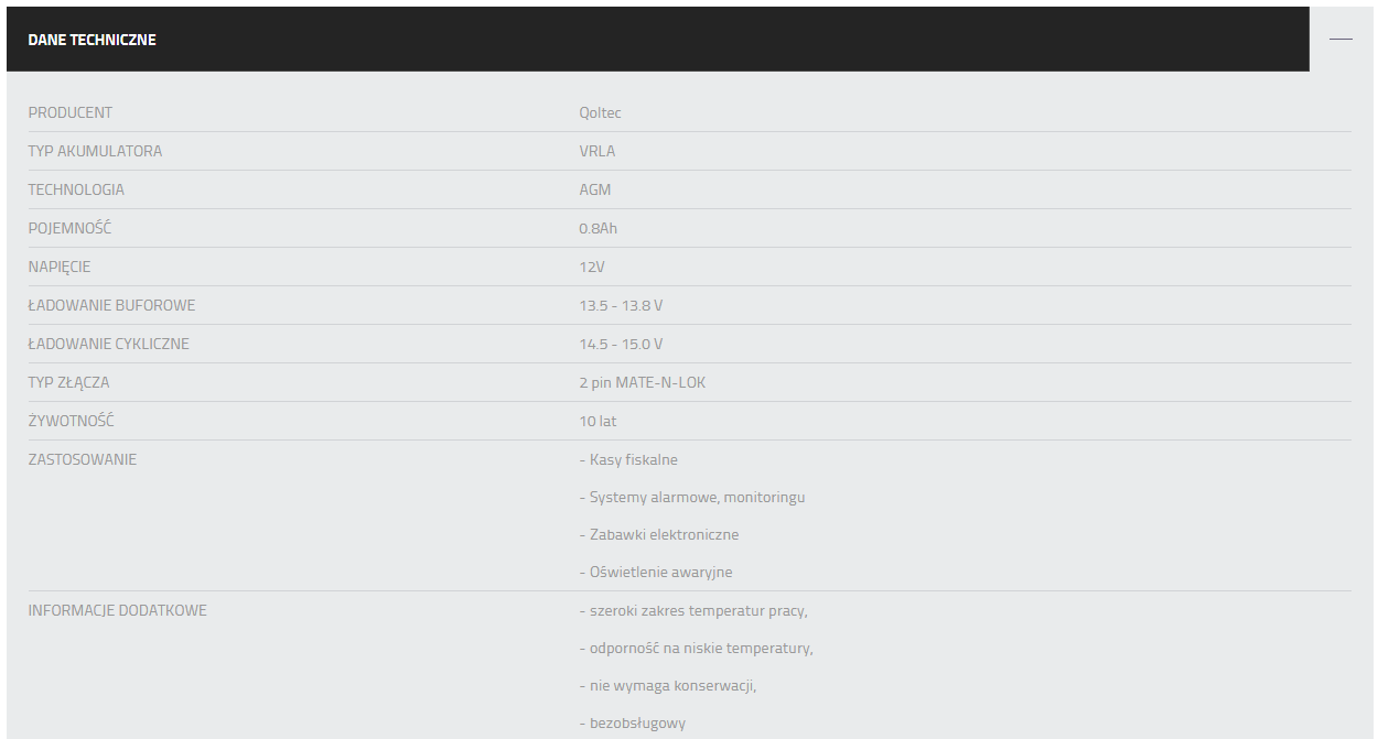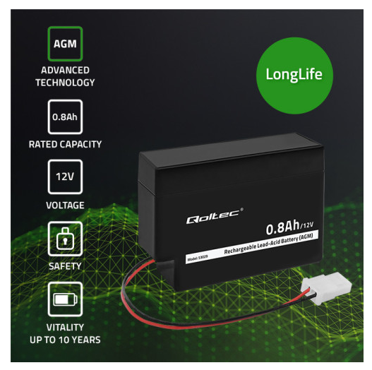 QOLTEC AKUMULATOR AGM 12V 0,8 Ah 53029