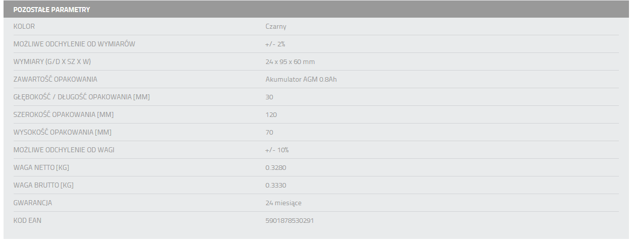 Kupując akumulator AGM 0.8Ah otrzymujeszpełną gwarancję niezawodności. Chcesz aby Twój sprzęt pracował na pełnych obrotach bez ograniczeń? Teraz masz pewność, że otrzyma potrzebną do działania dawkę energii bez kompromisów.