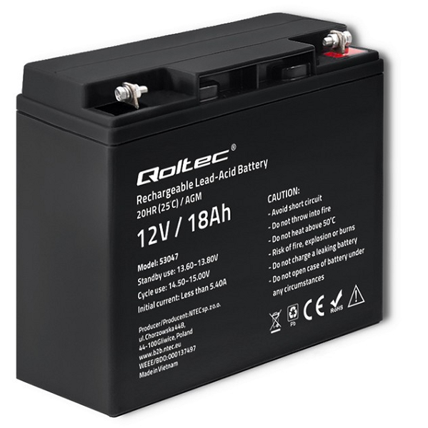 QOLTEC AKUMULATOR AGM 18 Ah 12V 53047