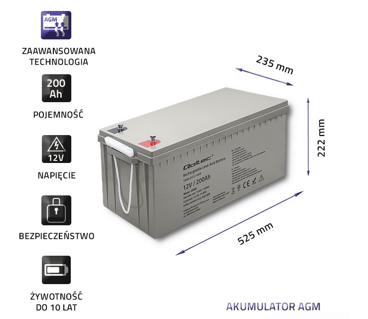 QOLTEC AKUMULATOR AGM 200 Ah 12V 53069