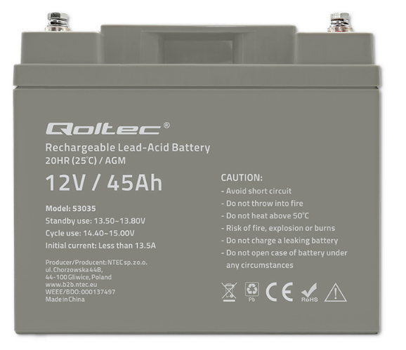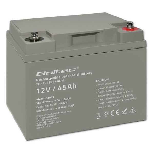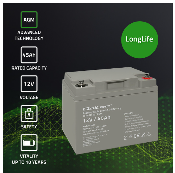 QOLTEC AKUMULATOR AGM 45 Ah 12V 53035