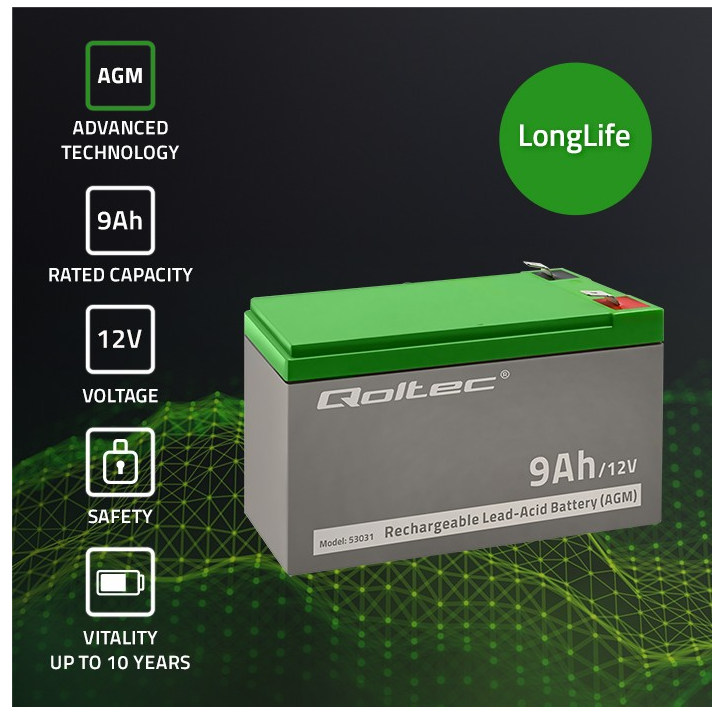QOLTEC AKUMULATOR AGM 9,0 Ah 12V 53031