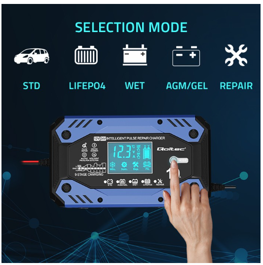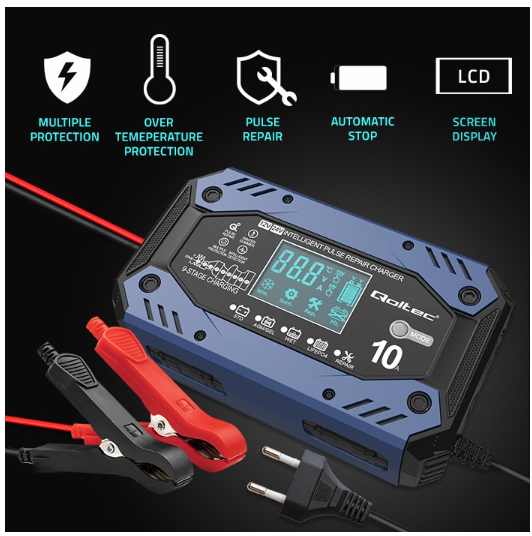 Inteligentna ładowarka marki Qoltec poprzez9-stopniowy automatyczny tryb ładowania ze zintegrowanym etapem odsiarczania i konserwacji zapewnia wyjątkową ochronę akumulatora oraz pozwala uzyskać najlepszą wydajność.