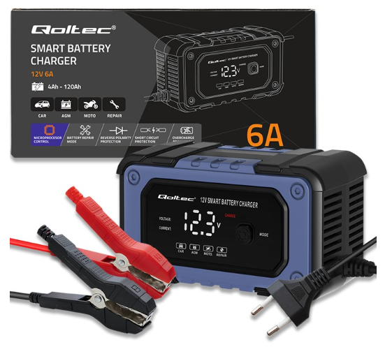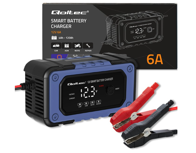 QOLTEC MIKROPROCESOROWA ŁADOWARKA PROSTOWNIK 12V 6A 52483 (do akumulatora AGM; GEL; STD z funkcją naprawy)
