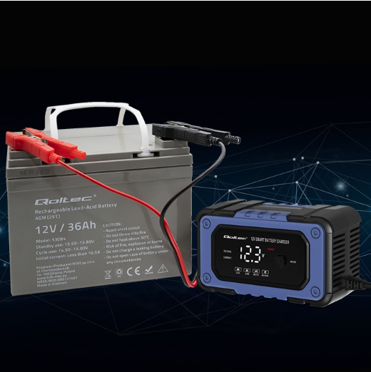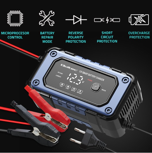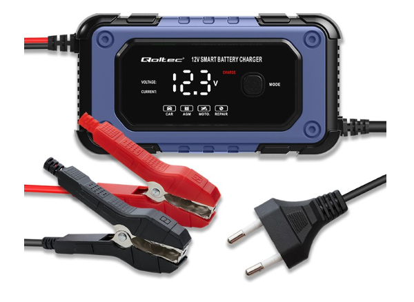 Prostownik Qoltec z 4 Trybami Pracy, Dopasowany do Różnych Typów Akumulatorów