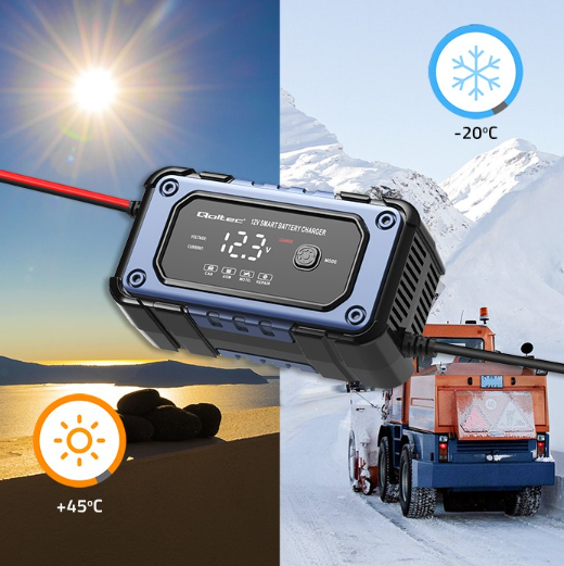 Inteligentna ładowarka sterowana mikroprocesorem do ładowania akumulatorów o napięciu 12V z wyświetlaczem LED to mikroprocesorowy geniusz w zarządzaniu energią. Idealna do akumulatorów AGM, GEL, SLA, WET w różnych typach pojazdów np. samochodów osobowych, motocykli, ciężarówek, kamperów, łodzi. Posiada 4 tryby pracy, dopasowane dla każdego rodzaju akumulatora.