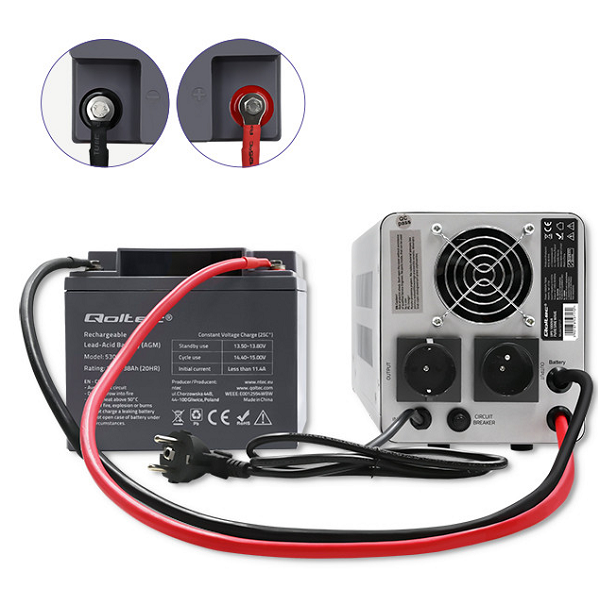 QOLTEC UPS 350W + AKUMULATOR AGM 120Ah (1 pompa ob. przez ok. 17,5h)