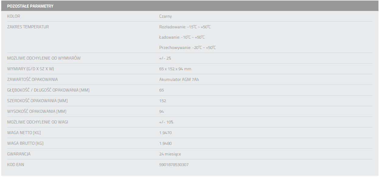 - zabezpieczeniaprzed przeciążeniem, zwarciem, spadkiem napięcia, przeładowaniem i rozładowaniem akumulatora, przegrzaniem oraz odwrotnym podłączeniem baterii,