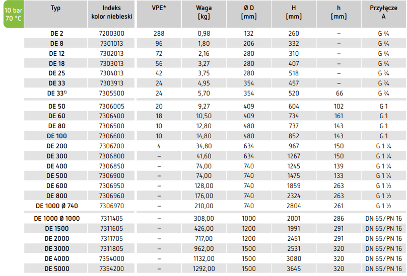 - dopuszczenie zgodne z dyrektywą dot. urządzeń ciśnieniowych 2014/68/UE