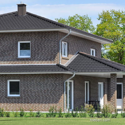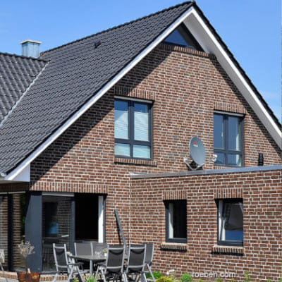 Ręcznie formowana cegła licowa Moorbrand brązowa cieniowana, to żywa czerwień z brązowymi i czarnymi akcentami, która w połączeniu z łupanymi krawędziami oraz surowym licem pozwala na uzyskanie autentycznego efektu naturalnego starego muru.