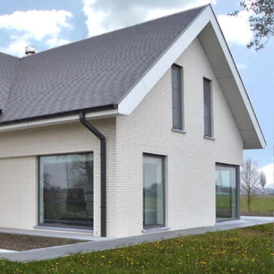 Gładka cegła klinkierowa najwyższej jakości – RöbenPREMIUM. Jej wyjątkowy, biały kolor wynika ze składu gliny pochodzącej z regionu Westerwald, bogatej w kaolinit (minerał, z którego produkuje się m.in. porcelanę).