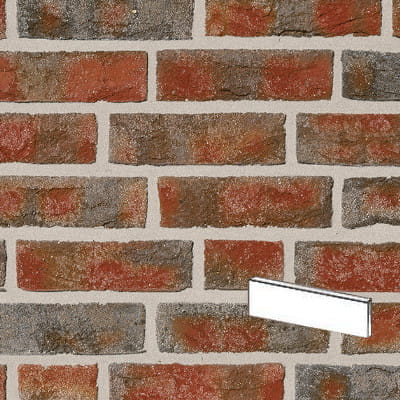 Płytka licowa ręcznie formowana najwyższej jakości (RöbenPREMIUM), o cieniowanej barwie czerwono-szaro-brązowej.