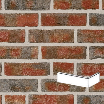 Płytka licowa ręcznie formowana najwyższej jakości (RöbenPREMIUM), o cieniowanej barwie czerwono-szaro-brązowej.