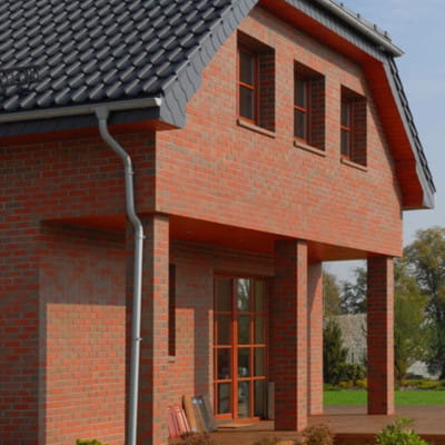 Płytka klinkierowa o wyjątkowej barwie – czerwona baza z brązowo-oliwkowym cieniowaniem, które mieni się różnorodnie w zależności od kąta padania promieni słonecznych.
