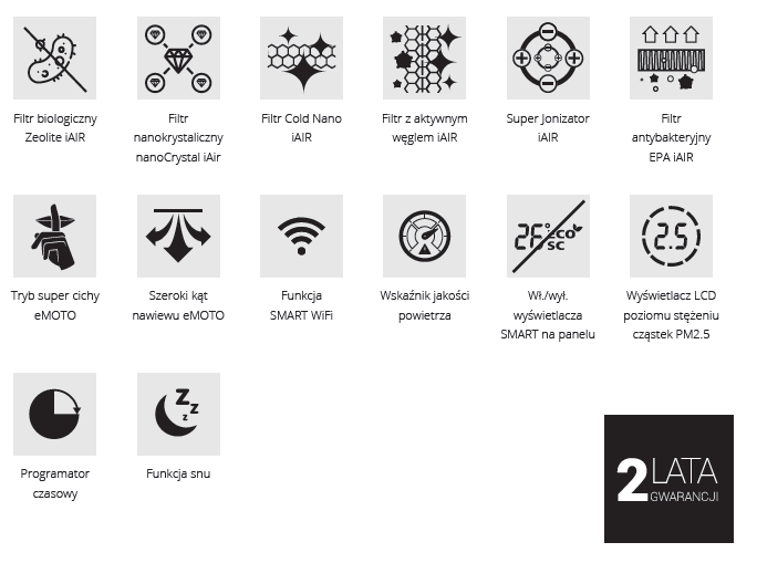 | Filtr elektrostatyczny | Tak |