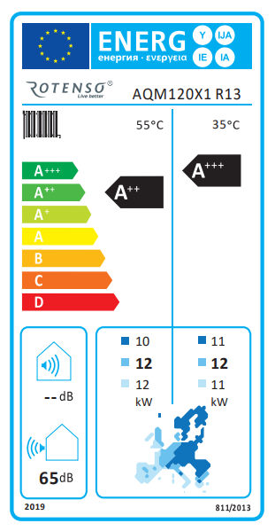 Poziom efektywności energetycznej pomp ciepła Rotenso®AquamiwynosiA+++(dla temp. wody 35°C)iA++(dla temp. wody 55°C).