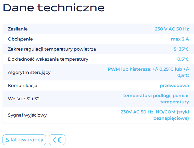 - Możliwość podłączenia do regulatorów dodatkowego czujnika temperatury podłogi FS300.