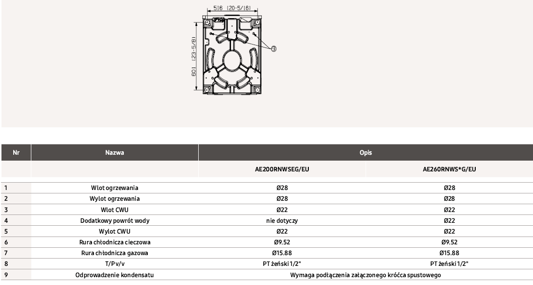 SAMSUNG EHS CLIMATEHUB – parametry techniczne