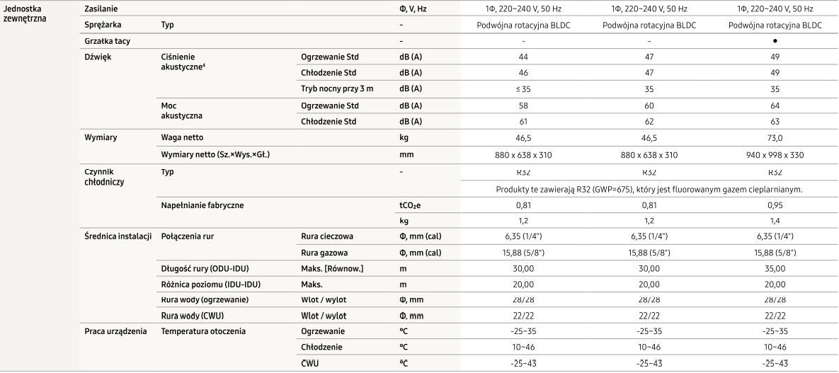 SAMSUNG EHS CLIMATEHUB – parametry techniczne