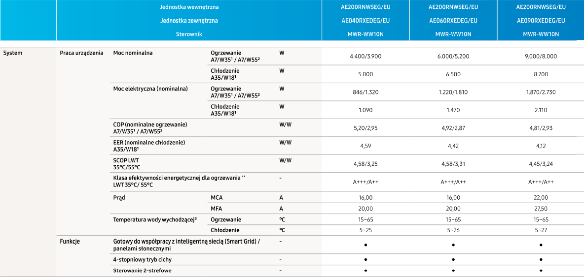 SAMSUNG EHS CLIMATEHUB – parametry techniczne