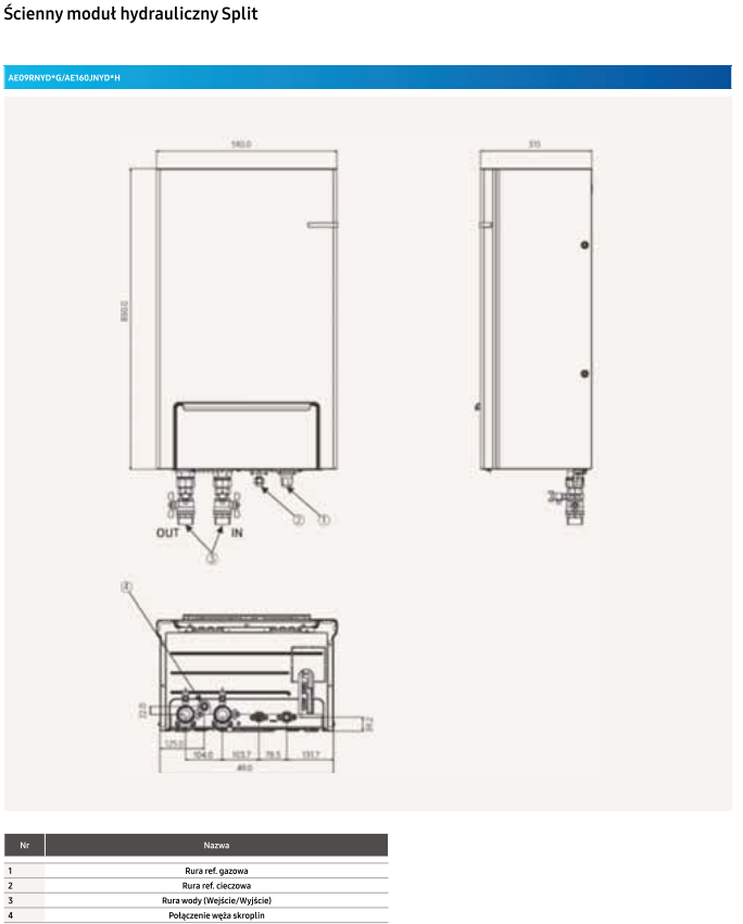 Jednostka wewnętrzna wisząca:AE090RNYDEG
