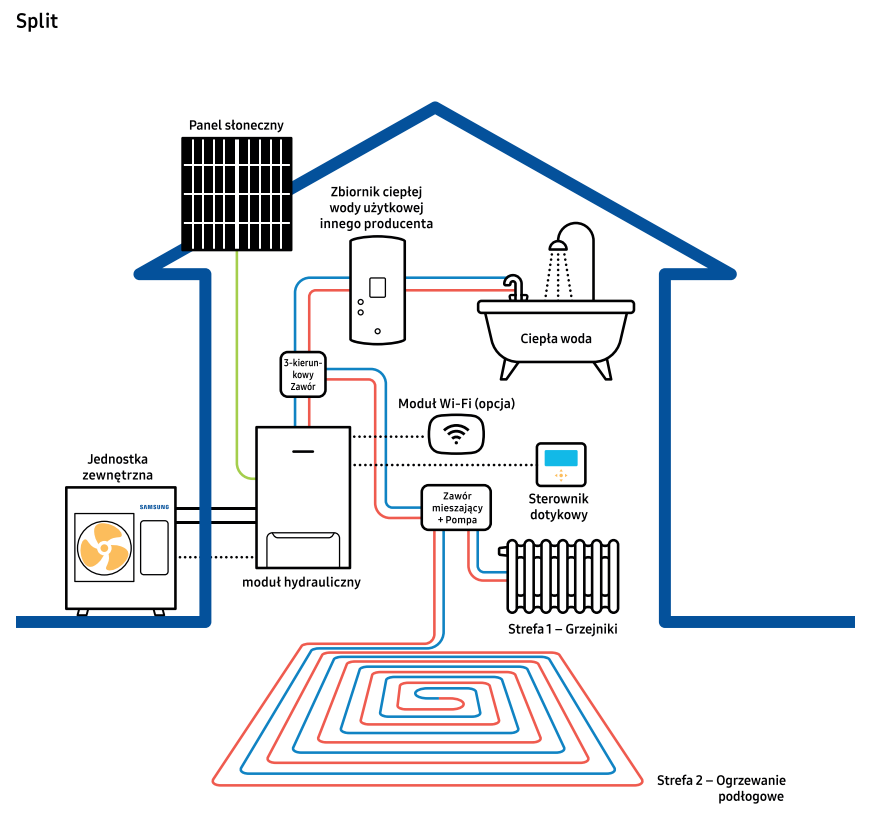 SAMSUNG EHS STANDARD (R32) 9/8,7KW 1-FZ POMPA CIEPŁA TYPU SPLIT AE090RNYDEG/AE090RXEDEG/MWR-WW10N