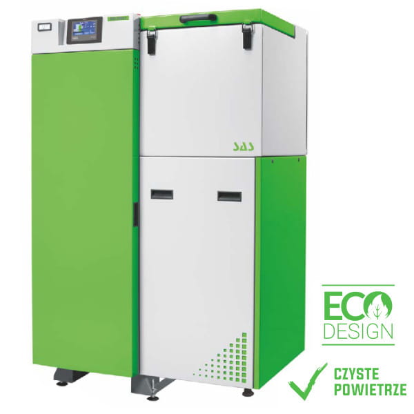Wyposażenie:sterownik (ST-555P), palnik SAS MULTI FLAME (moduł sterujący praca palnika, grzałka do rozpalania, mechanizm ruszt ruchomych, fotokomórka – czujnik ognia, czujnik temp. podajnika), wentylator (system kontroli przepływu powietrza – AIR FLOW CONTROL), panele ceramiczne, termometr, szuflada popielnicowa, zawór bezpieczeństwa, zasobnik paliwa z czujnikiem otwarcia klapy, czujnik temperatury spalin, komplet stopek regulacyjnych (nie dotyczy kotłów o mocy powyżej 36 kW), komplet narzędzi do obsługi kotła