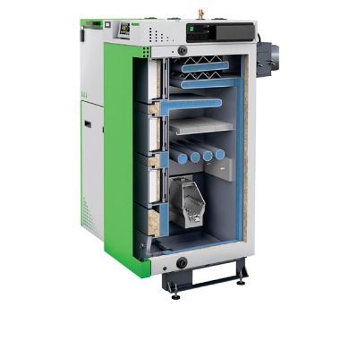 - elementy ceramiczne i turbulatory spalin – ograniczają emisję pyłów oraz zwiększają sprawność kotła