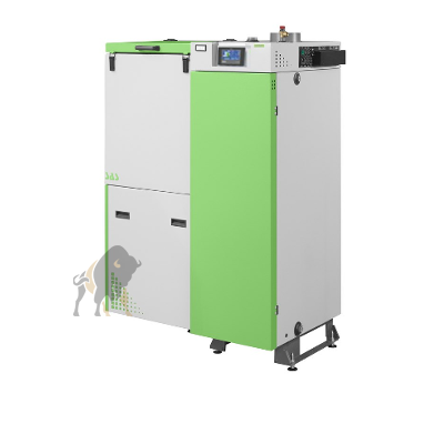 Wyposażenie:sterownik (ST-555), wentylator, retorta, panele ceramiczne, deflektor, termometr, szuflada popielnicowa, zawór bezpieczeństwa, zasobnik paliwa z systemem wyrównywania ciśnienia i czujnikiem otwarcia klapy, turbulator spalin, czujnik temperatury spalin, ogranicznik temperatury bezpieczeństwa STB, komplet narzędzi do obsługi kotła