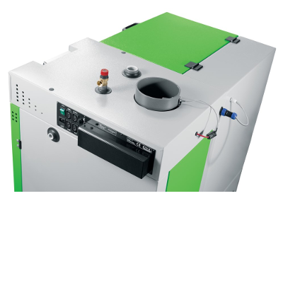 - zasobnik opału o dużej pojemności, system wyrównywania ciśnienia w koszu i czujnik otwarcia klapy