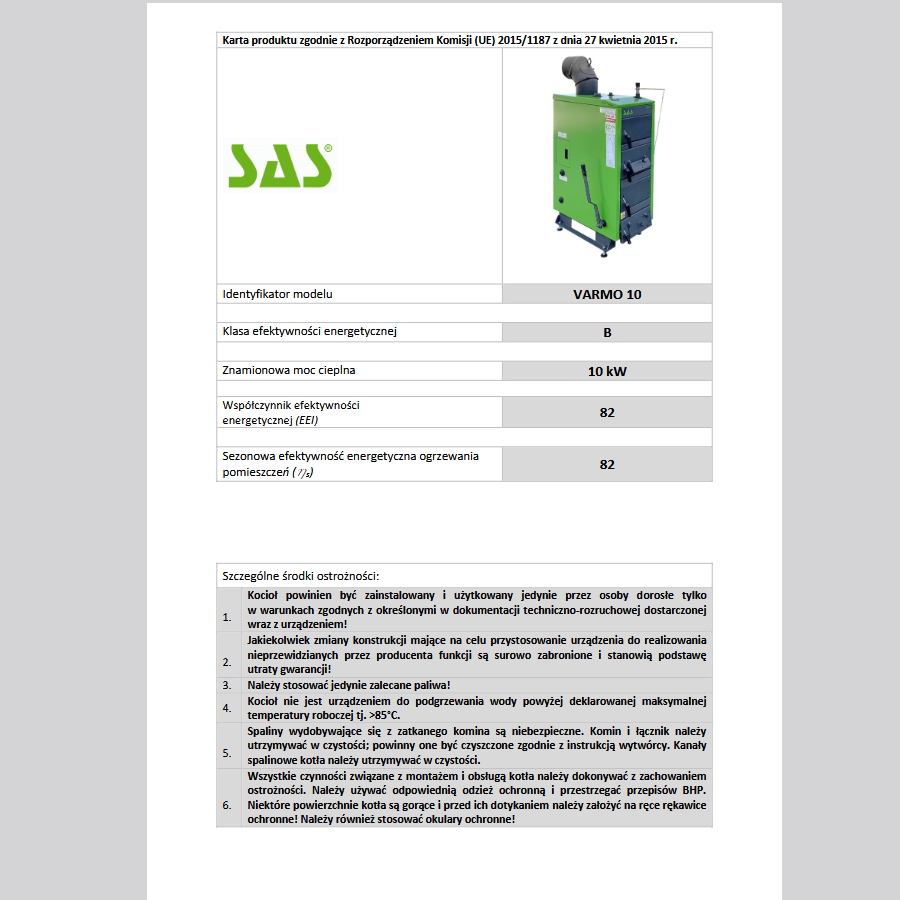SAS VARMO – Cechy kotła