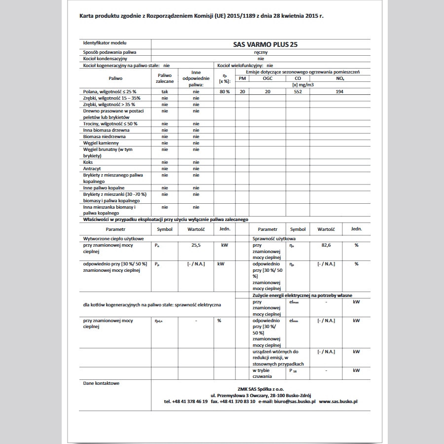 SAS VARMO PLUS – Cechy kotła