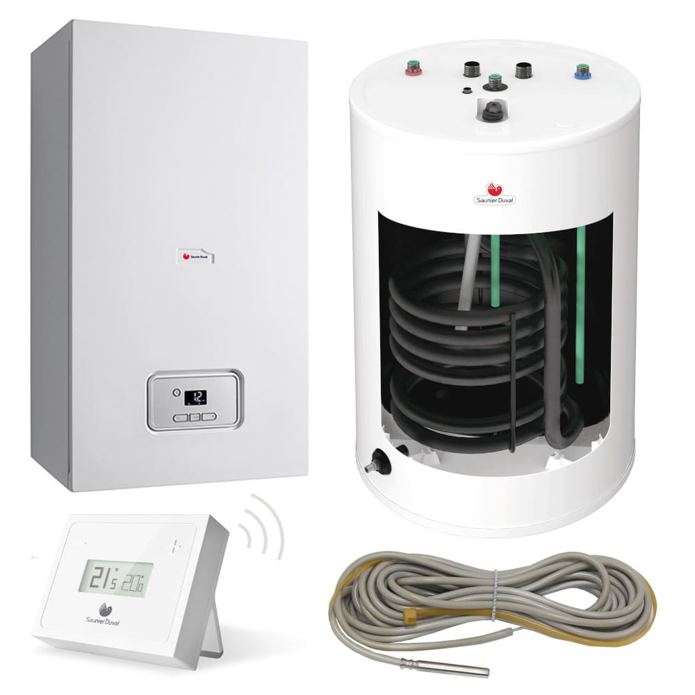 SAUNIER DUVAL PAKIET KOCIOŁ JEDNOFUNKCYJNY THELIA CONDENS AS 30-A 30 KW + ZASOBNIK C.W.U. 150L FE 200/6 BM + CZUJNIK NTC + REGULATOR BEZPRZEWODOWY MIGO 0010021605