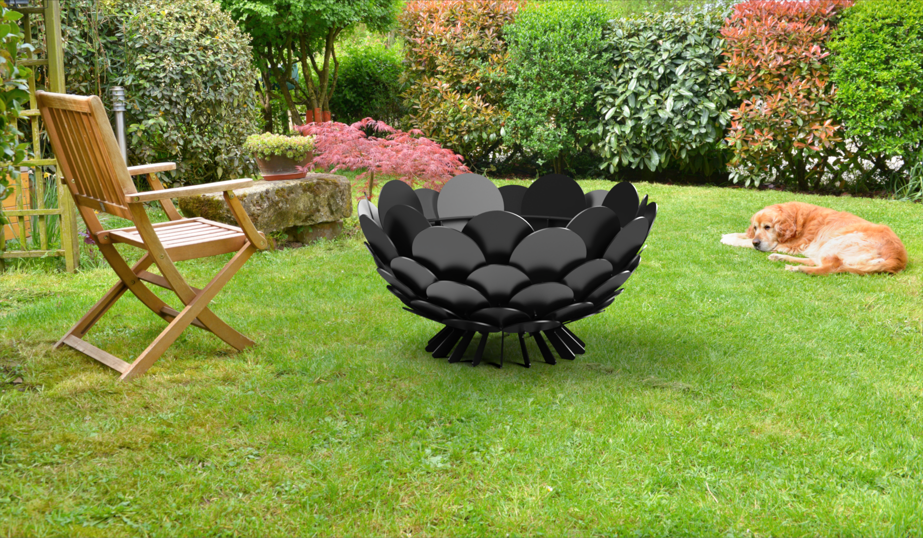 Palenisko ogrodowe PAVO zachwyca swoim niezwykłym designem, składającym się z kilkudziesięciu półokrągłych elementów, które w harmonijnym ułożeniu przypominają pawi ogon.