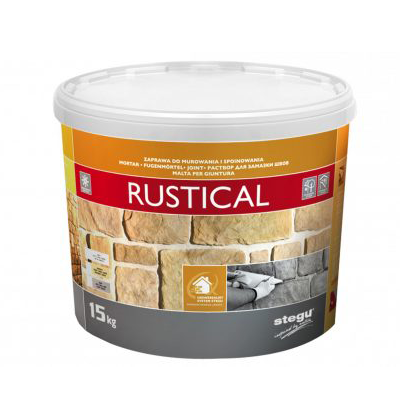 Zaprawa do murowania i spoinowania RUSTICAL firmy STEGU jest suchą masą do spoinowania płytek elewacyjnych imitujących kamień i piaskowiec jak również do kamienia naturalnego i niektórych rodzajów klinkieru. Charakteryzuje się elastycznością, zwiększoną przyczepnością do podłoża oraz odpornością na warunki atmosferyczne (mrozoodporna i wodoodporna). Można ją stosować wewnątrz pomieszczeń oraz na elewacjach zewnętrznych budynków i słupkach ogrodzeniowych.