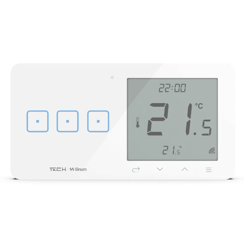 Rozbuduj swój system o inteligentny bezprzewodowy regulator temperatury! Regulator wyposażony jest w duży podświetlany wyświetlacz z dotykowymi przyciskami. Dodatkowo posiada czujnik wilgotności powietrza, a także umożliwia sterowanie temperaturą podłogi dzięki możliwości podpięcia przewodowego czujnika podłogowego NTC (brak w zestawie).