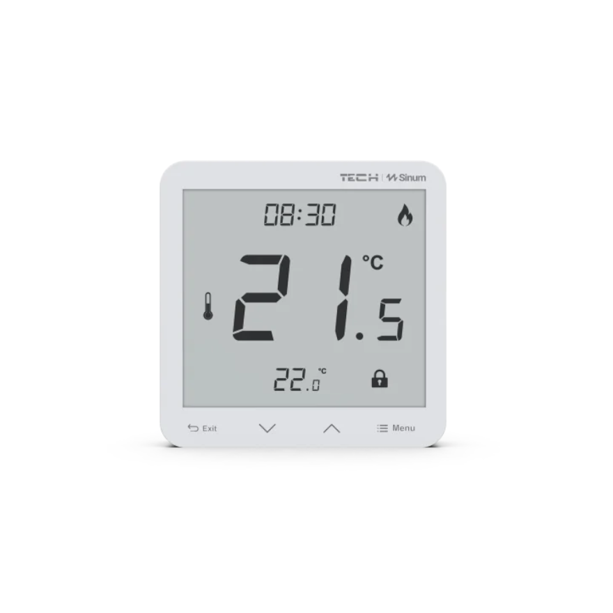 Przewodowy regulator R-S3 wyposażony jest w czytelny wyświetlacz z dotykowymi przyciskami i szklanym frontem. Dodatkowo posiada czujnik wilgotności powietrza oraz umożliwia pomiar temperatury podłogi (przy wykorzystaniu czujnika podłogowego NTC)