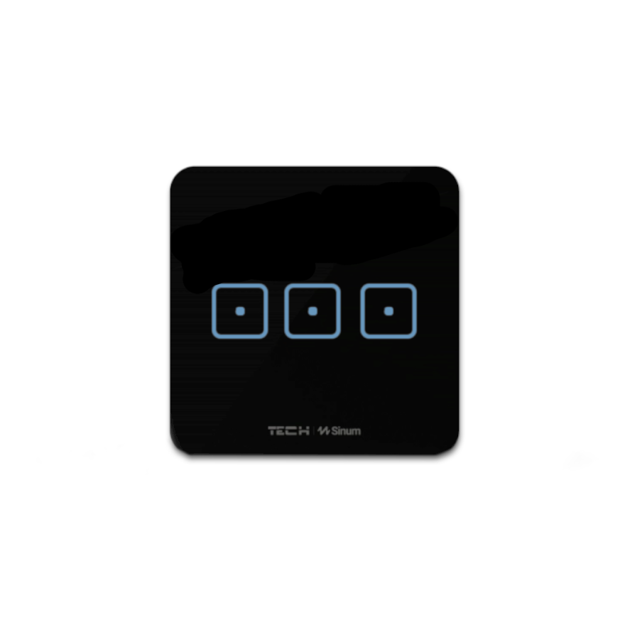TECH SINUM TRÓJPOLOWY DOTYKOWY SZKLANY WŁĄCZNIK WS-03 CZARNY (KOMUNIKACJA BEZPRZEWODOWA WTP)