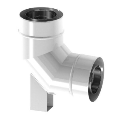 Kolano koncentryczne białe, sztywne o średnicyØ 80/125 mm 87° z podporą i uszczelką firmy Termet.
