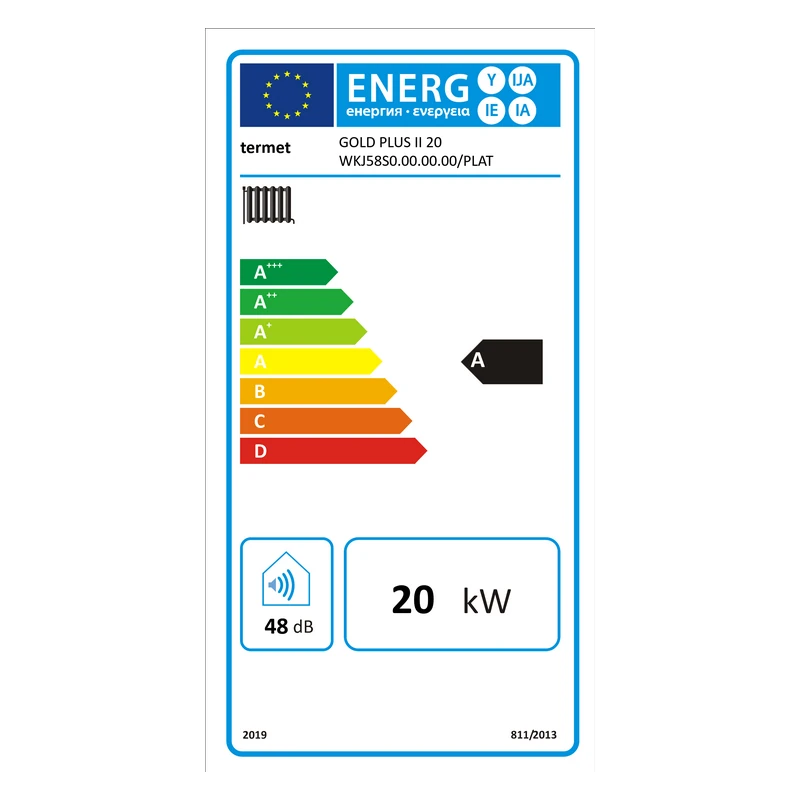 | Klasa sezonowej efektywności energetycznej ogrzewania pomieszczeń | A |